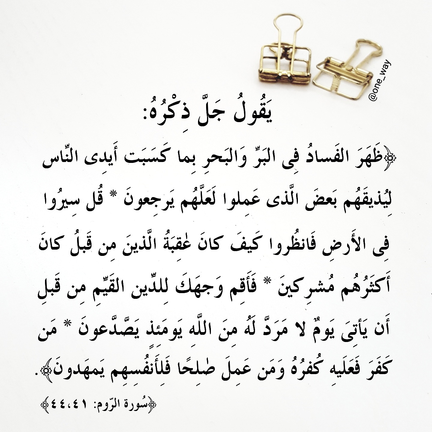 تحتاج الكثير من التأمل ظهر الفساد في البر والبحر السبب بما كس بت أيدي الناس الحكمة لي ذيقهم بعض الذي ع م Quran Verses Quran Arabic Beautiful Quran Quotes